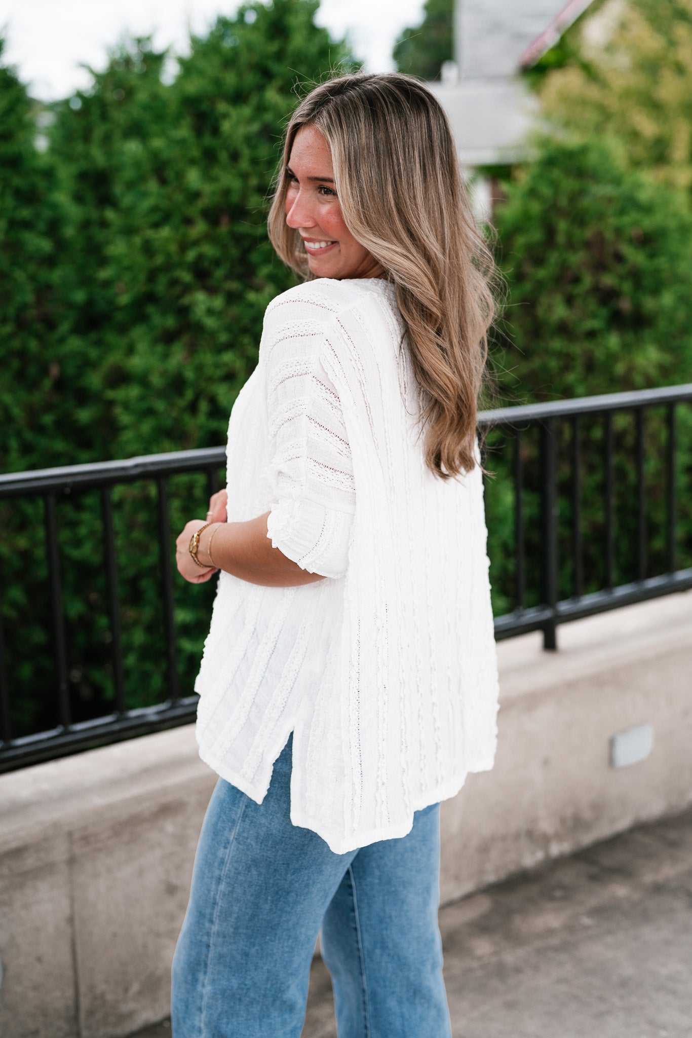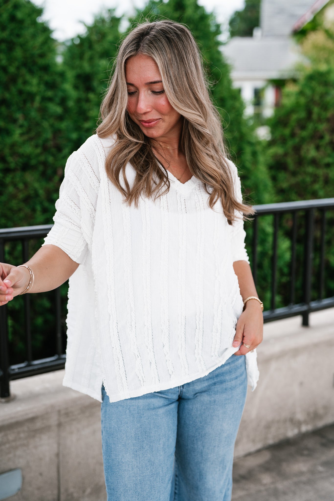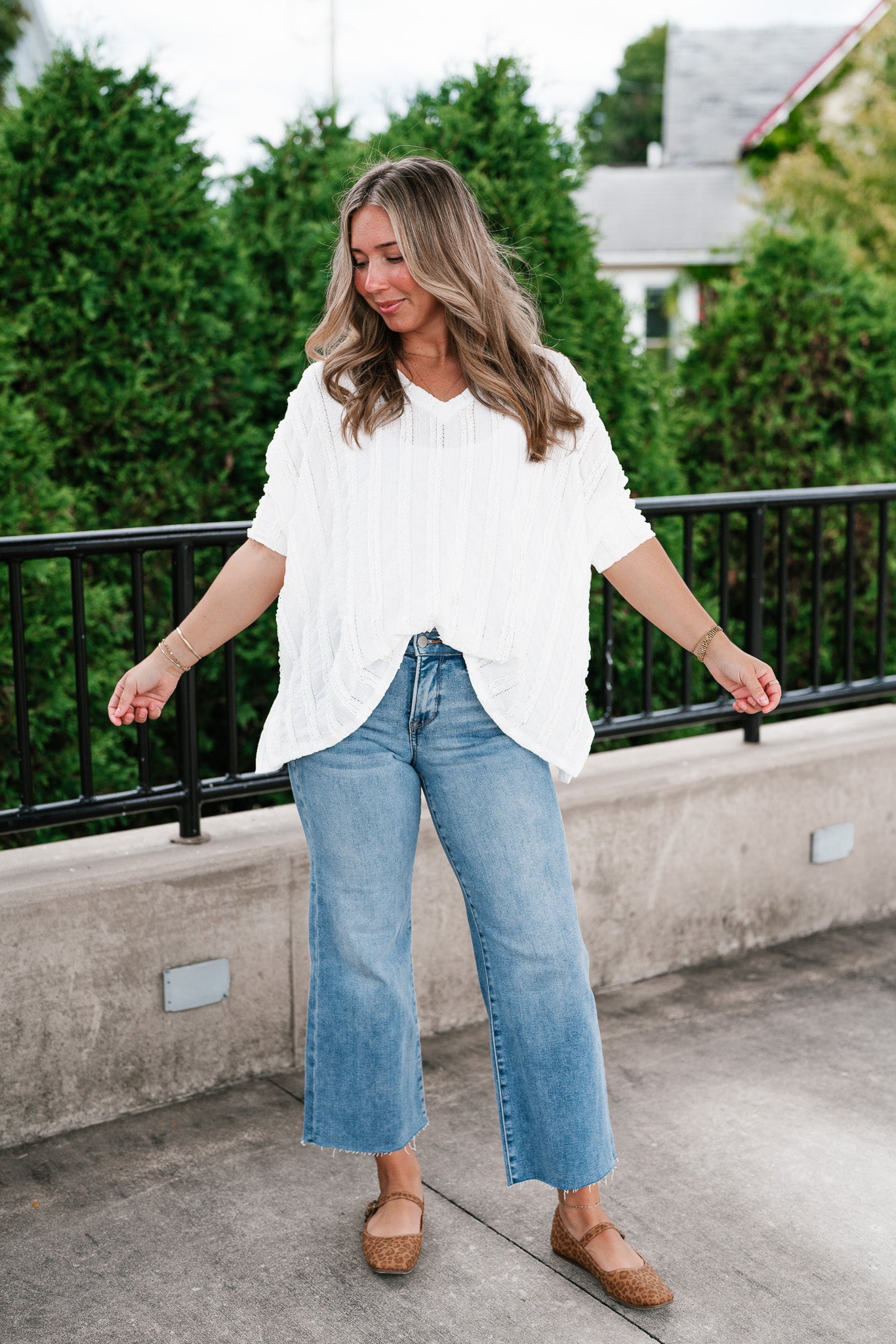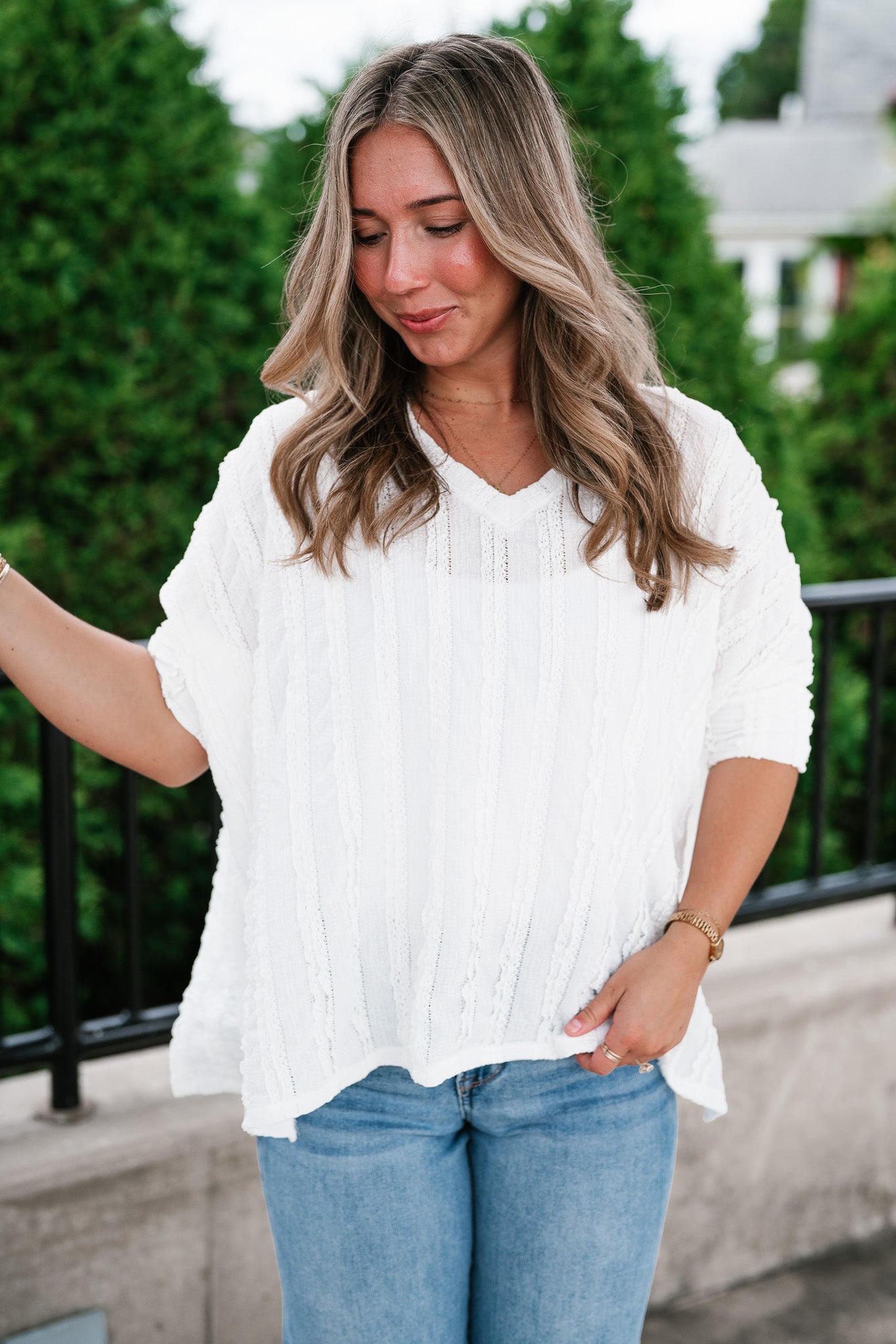 Experience effortless comfort and subtle style with the Willows Textures Relaxed Top. Crafted from a soft, textured fabric, this relaxed-fit top drapes beautifully for a laid-back yet polished look. Featuring a v-neckline and short sleeves, it’s perfect for layering or wearing on its own. The creamy tone and tactile texture adds depth to your everyday wardrobe, making it easy to pair with jeans, skirts, or tailored pants. Whether you’re lounging at home or stepping out for casual errands, the Willows Top delivers cozy sophistication with a modern edge.