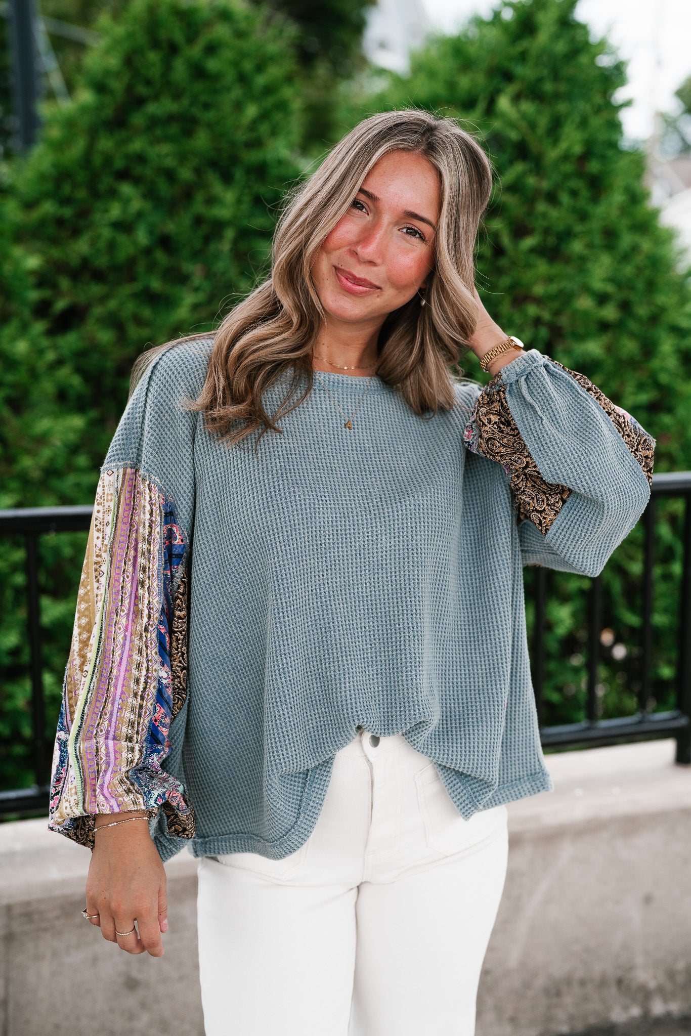 Woodland Charm Mixed Print Knit Top brings a touch of effortless charm to your wardrobe.